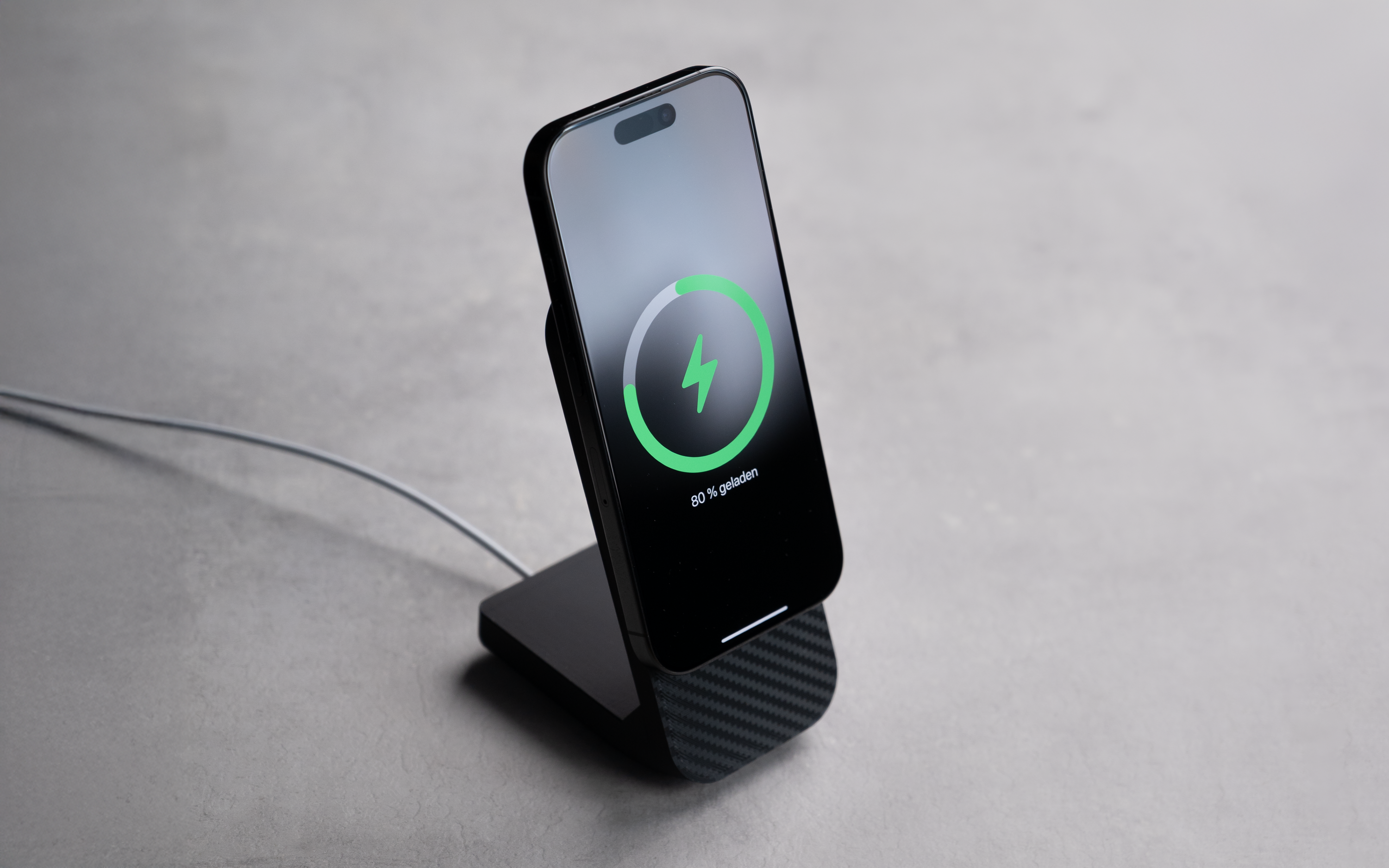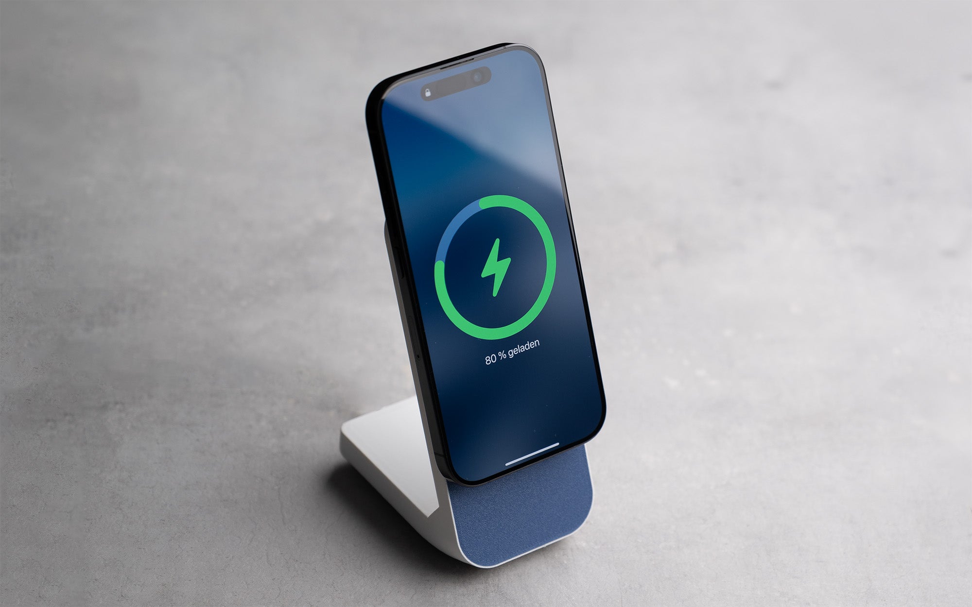 Unsere Station hingegen lädt durch die MagSafe-Kompatibilität nicht nur viel effizienter und bleibt deshalb kühl – dein iPhone arbeitet außerdem mit der Station zusammen und regelt die Ladeleistung automatisch herunter, falls der Akku zu warm wird.